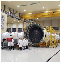 Preparing for flight Even before the first Angara-5 rocket embarked on its maiden test mission in December 2014, the PO Polyot company in the Siberian town of Omsk was busy working on the second and third vehicles. During 2014, PO Polyot manufactured the propellant tanks and other structural components of Vehicle No. 71752 intended for the second launch and also started outfitting key sections of the rocket. In parallel, the company's Division No. 67 was welding the bulkheads of propellant tanks for the third rocket (Vehicle No. 71753), while Division No. 14 was manufacturing flanges. Similar work on Vehicle No. 71754 was planned for 2015. Due to delays with the production of some parts at PO Polyot itself and others to be delivered from subcontractors, in particular from KB Armatura, the overall progress was under great pressure. (726) As of the beginning of 2015, the second rocket was expected to leave the assembly line by November. (725) However, by mid 2016, the rocket was yet to be completed with its launch slipping to the middle of 2017. Mission plan for the second Angara-5 flight
