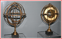 This Mesopotamian tablet carried some of the earliest known descriptions of celestial constellations, including Orion and Gemini. 3000 B.C.: The Babylonians record the movement of celestial bodies. (348) 3000 B.C.: A neolithic temple in Ireland carries a depiction of the Moon with lunar maria. (399) 2000 B.C.: The existence and movement of planets is recognized in Babylon. 1921-1901 B.C.: Babylonian tables appear registering movements of Venus, Jupiter and Mars. (348, 347) 1500 B.C.: The egyptians use water clocks. (347) 1300 B.C.: An Egyptian star catalog lists 43 constellations. Five planets: Mercury, Venus, Mars, Jupiter and Saturn are also known. (347) 1259 B.C.: Chinese astronomers Hi and Ho are condemned to death "in accordance with the law" for their failure to predict a solar eclipse. (347) 1000 B.C.: The Babylonians track the movements of the Sun, the Moon and the planets and determine time of day with a sundial. 747 B.C.: During the reign of Nabonassar, the Babylonians start continuous observations of celestial bodies, according to Ptolemy. (347) ~650 B.C.: A Babylonian astronomer teaches on Kos, an island off the cost of Asia Minor, a region of active interaction between the Greeks and eastern cultures at the time. 624-547 B.C.: Thales, a Greek astronomer and philosopher, lives and works in Miletus. 585 May 28 B.C.: Thales predicts a solar eclipse at a battle of Lydians and Medes. 572 B.C.: Pythagoras is born in Samos. 540-500 B.C.: Pythagoreans postulate the existence of "counter earth," a clone of the Earth, not visible from Greece, but which moves with the Earth. (148) ~500 B.C.: Greek philosopher Anaxagores says the Moon is a rock reflecting sunlight. ~466 B.C., early June - late August: A possible sighting of Halley Comet in Greece. 384 B.C.: Aristotle rejects plurality of planets, negatively impacting later thinkers. (148) ~360 B.C.: Heraclides of Pontus, a disciple of Plato, concludes that the Sun is the center of revolution for Mercury and Venus, but that the Sun itself revolves around the Earth. 331 B.C.: Soon after the Macedonians' capture of Babylon, Callipus, the nephew of Aristotle, delivers Babylonian astronomical records to Greece. (347) ~280 B.C.: Aristarchus suggests that the Earth revolves around the Sun. He provides the first estimation of the Earth-Sun distance. (213) 240 B.C.: Chinese astronomers record a sighting of what is later known as Halley Comet. ~240 B.C.: Eratosthenes measures the circumference of the Earth with surprising accuracy. He also invents a system of latitude and longitude, and a calendar that has leap years. 163-164 B.C.: A Mesopotamian uneiform tablet describes an observation of a comet later named after Halley. 129 B.C.: Greek astronomer Hipparchus of Nicaea catalogues the relative positions and brightness of around one thousand stars with an accuracy of about one degree thanks to the use of gnomons, astrolabes, and armillary spheres. He also creates the magnitude system for describing the brightness of stars in use until today. 1st century A.D.: First known magnetic compass invented in China. 46-120 (127): Plutarch believes the Moon is a solid, smaller Earth, inhabited by demons. (148) 140-150: Ptolemy suggests a geocentric theory of the universe in his main work entitled Megale Syntaxis (Great Collection). 774-775: A powerful gamma-ray burst strikes Earth, possibly, as a result of a collision of a pair of black holes or neutron stars in our galaxy or a Sun flare. ~830: Along with a number of Greek writings, Ptolemy's Great Collection is translated into Arabic under the name Almagest for the Caliph al-Mamun. 1054: A supernova explodes in Crab Nebula, possibly inspiring some engravings documenting the event on tombstones in the Balcan Region. 1120-1125: One of the earliest observatories of Medieval Islam operates in Cairo until its patron is condemned to death for communication with Saturn and the facility is destroyed. 1145: Christian church bans debate on the plurality of the worlds as heresy. (213) 1259: Hulagu, a Mongolian ruler, sponsors the construction of the Maragha observatory led by the Persian astronomer Nasir al-Din al-Tusi to satisfy the ruler's belief in astrology. The facility includes a big library and numerous outdoor instruments. 1277: Étienne Tempier, the bishop of Paris, with the blessing of Pope John XXI, officially rejects the church's previous view about the impossibility of more than one world on the grounds that "God's plentitude and creative power could not be restricted." (213) 1428: Ulugh Beg (1394-1449), ruler of Samarkand, initiates the construction of an observatory in the city. The center includes a circular three-floor building and many large-scale, custom-built instruments. Among them is a quadrant so large that part of the ground has to be removed to allow it to fit in the observatory. There is also a marble sextant, a triquetram and an armillary sphere. 1437: Ulugh Beg publishes a catalogue of 992 stars and brings the accuracy of the year length to 365 days, 5 hours, 49 minutes and 15 seconds. 1475 Sept. 30: Russian chronicles (letopisi) describe a partial solar eclipse over the city of Kolomna. 1514: Nicolaus Copernicus makes his first observation of Saturn. 1538: Italian scholar Girolamo Fracastoro describes operation of a telescope. 1543: "De revolutionibus orbium coelestium" (On the Revolutions of the Celestial Spheres) by Copernicus is published, reviving the heliocentric theory of the Universe once and for all. 1572, early November: Observers on Earth witness the appearance of a "new star" in the constellation Cassiopeia, an event later recognized as the brightest naked-eye-visible supernova in more than 400 years. Tycho Brahe, a Danish astronomer, proved that the new object was among the stars, the sphere previously thought to be unchangeable. 1582: Pope Gregory XIII introduces the Gregorian calendar. 1598: Tycho Brahe completes a catalogue with the positions of about 1,000 stars thanks to t
