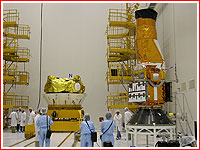 The COROT satellite (right) and its Fregat upper stage during pre-launch processing. Credit: CNES