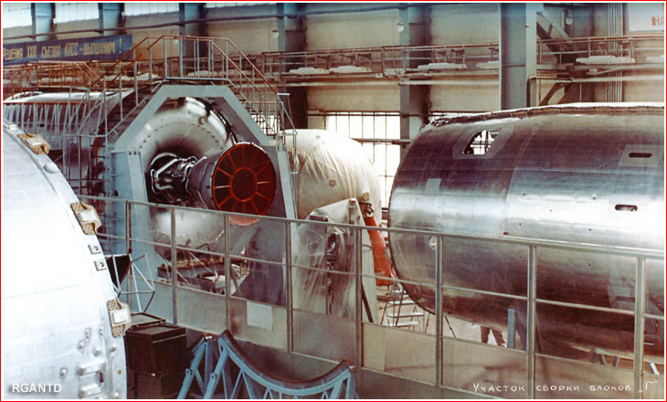 Sergei Korolev's OKB-1, later TsKBEM, based in Podlipki, near Moscow, was responsible for the overall design of Block G, while the development of the production documentation and the actual manufacturing of the stage were delegated to the Progress factory and its design bureau in Kuibyshev (now Samara), along with all the booster stages of the N1 rocket.