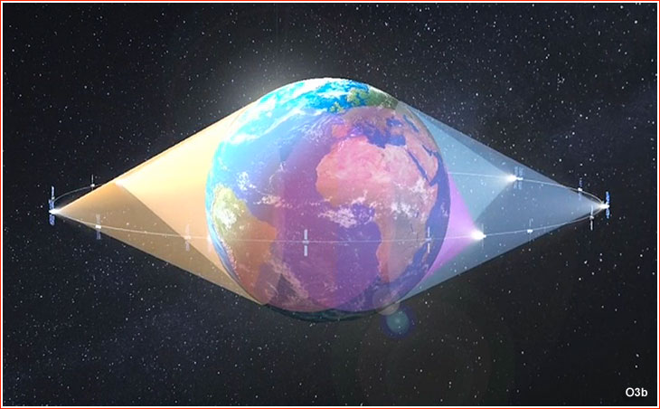 O3b satellites 03b satellites are built by a European company Thales Alenia Space for the 03B Networks Ltd, a global, high-speed, satellite-based Internet network for telecommunications operators and ISPs. It was designed to provide high-speed, ultra-low-latency Internet Protocol (IP) connectivity between emerging and developed markets worldwide, thus bringing online most remote and disconnected regions of our planet. More than 3 billion people in Asia, Africa, South America and the Middle East were reported to benefit from O3B’s new broadband internet infrastructure, whose name stands for "Other 3 billion." The system was promised to fundamentally change the way IP, 3G Cellular and WiMAX networks interconnect. It was expected to reduce the costs of backhaul for Mobile Operators and Internet Service Providers, enabling them to provide more cost-effective services in underserved and emerging markets. O3b Networks Ltd., based in Jersey (Channel Islands) had investors including SES (a major communications satellite operator), Google Inc. (a search engine giant), Liberty Global Inc. (a cable company) and investment banks HSBC, Allen & Company, North Bridge Venture Partners, Satya Capital, and the Development Bank of South Africa. Combined these companies had reportedly invested $1.18 billion into the new venture since its foundation in 2008. (656) The idea for the project was reportedly conceived in the jungle of Rwanda in 2007. O3B satellites built by Thales Alenia Space had a mass of 700 kilograms and a design life of 10 years. The satellites were to operate in Ka-band and provide greater than 10 Gbps of capacity.