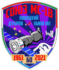 The official logo of the Soyuz MS-18 mission celebrating the 60th anniversary of Gagarin's mission. Credit: Roskosmos