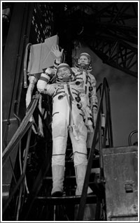 The Soyuz-17 crew boarding their spacecraft on Jan. 11, 1975.