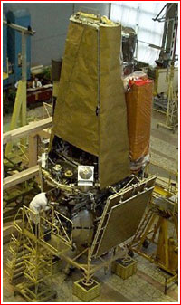 A payload section for the Spektr-RG spacecraft with the SODART telescope under assembly circa March 1998. The satellite's service module can be seen on the background in the center. After the launch and the immediate loss of the Mars-96 spacecraft in November 1996, the Russian government attempted to boost its funding for the Spektr-RG project, but the real money continued coming irregularly and below the required budget even after giving Spektr-RG the highest priority among science projects in 1997. While international partners dutifully delivered their development prototype and, in many cases flight versions of science instruments, the service module of the spacecraft stayed unfinished at NPO Lavochkin. Moscow struggled to fund the project despite considerable political pressure from international partners, including the weight of the Gore-Chernomyrdin commission on space cooperation between Russia and the United States, which reconfirmed its support for the Spektr-RG project in January and July 1996. At that time, the payload of the mission were undergoing the second phase of integrated testing using engineering prototypes of the instruments delivered back in 1993. The US partners planned to deliver flight versions of the instruments in the Summer of 1996. In the summer of 1995, the US also provided IKI with the first part of the arhiving system and planned to deliver the second part in 1996. At the time, the launch of the observatory was promised in 1997, but by December of 1996, joint US-American documents were already citing the end of 1998 launch date. By that time, NASA was already loosing patience, stating that it would boost its funding for the project only when it sees the 12-month readiness of the spacecraft for flight. NASA promised to purchase near-real-time recording system for the project as soon as the flight version of the Spektr-RG was ready. By that time, integrated tests of the scientific payload based on engineering model were still incompleted, but the assembly of the proto-flight model of the SODART telescope was declared finished. In 1998, the financial default in Moscow delivered a mortal blow to the program. By that time, Western partners spent $300 million on their participation in three Spektr observatories, with most of these funds going to Spektr-RG. In the wake of the financial crisis, Roskosmos still kept Spektr-RG at the top of the list of science projects, promising 95,000,000 rubles in 2000, according to a protocol of a meeting on the subject issued on April 13 of that year. However, the document now put off the launch date to 2002 with a footnote that it would depend on the actual funding. But, the money were not forthcoming. As a "compensation" for the losses by foreign partners, Russia offered a Proton rocket to launch a similar European space telescope, known as Integral. Ironically, the high cost of the Proton was previously cited as one of the reasons for delays in the Spektr-RG project. (402) Even some of the Russian scientists, who participated in the Spektr-RG project, decided to "jump the ship" and banked on the European observatory instead. In 1999, Roskosmos added 30 million rubles for the support of the project, essentially chanelling these funds for the procurement of a Proton rocket. Another 80 million rubles were promised in 2000 and 140 million in 2001. It is unclear how much of this money had actually been paid. ESA provided Russian partners 25 percent of available observation time onboard Integral. The European spacecraft was launched without problems or considerable delays in 2002. Strangely, the stalled Spektr-RG project was still promised 77.7 million rubles in 2001, along with 47.15 million rubles in "compensation" funds (apparently for previous years). Only on Feb. 13, 2002, the Space Council of the Russian Academy of Sciences, which oversaw all space sciene projects, essentially declared Spektr-RG dead, by stripping its priority status, though without a concensus among the council members. By that time, another 165 million rubles were already allocated for the defunct project during its final year. Still, the majority of the Space Council argued that by 2006, the earliest date when Spektr-RG had a chance to fly, the new-generation AXAF Chandra observatory from NASA and the European XMM Newton would already deliver the kind of scientific data that would make Spektr-RG irrelevant. Instead, the Academy of Sciences switched its priority to the Spektr-R project, hoping to launch it no later than 2007. In reality, it would not fly until the middle of 2011. (402)